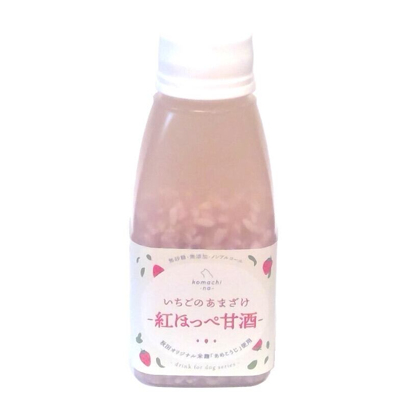 甘くて心地よい、いちごのあまざけ【komachi-na-】いちごのあまざけ<紅ほっぺ甘酒> 150mlをぜひお試しください!秋田のオリジナル米麹「あめこうじ」を使用し、すっきりとした甘さが特徴です。健康的な甘さで、癒しのひとときをお楽しみいただけます。
