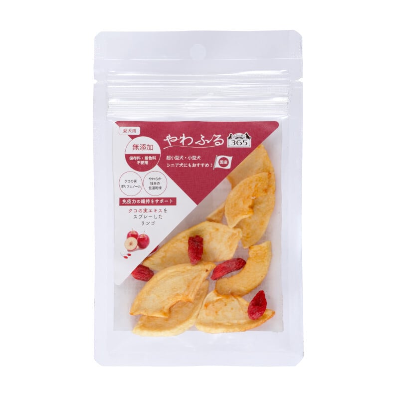 愛犬の健康と幸せな日々を支えるために、やわふるのクコの実エキスをスプレーしたリンゴ スライスカットをぜひお試しください!