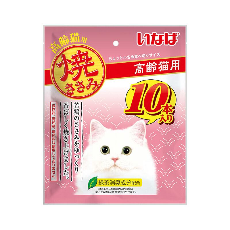 焼ささみ 高齢猫用は、元気なシニア猫のために特別に開発された美味しいおやつです!新鮮な鶏のささみを使用し、健康を考えて作られた10本入りパックで、日々の楽しみやご褒美タイムを特別に演出します。