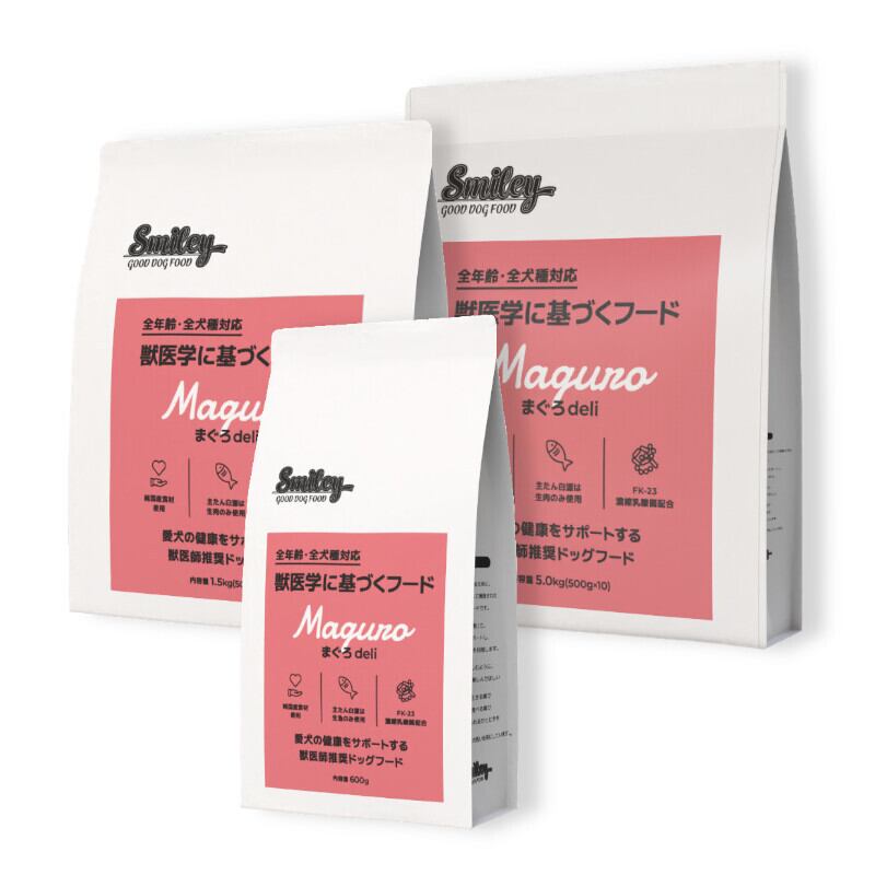「Smiley まぐろdeli」は、愛犬との楽しいひとときをお届けするために手軽に楽しめるお食事として最適です。