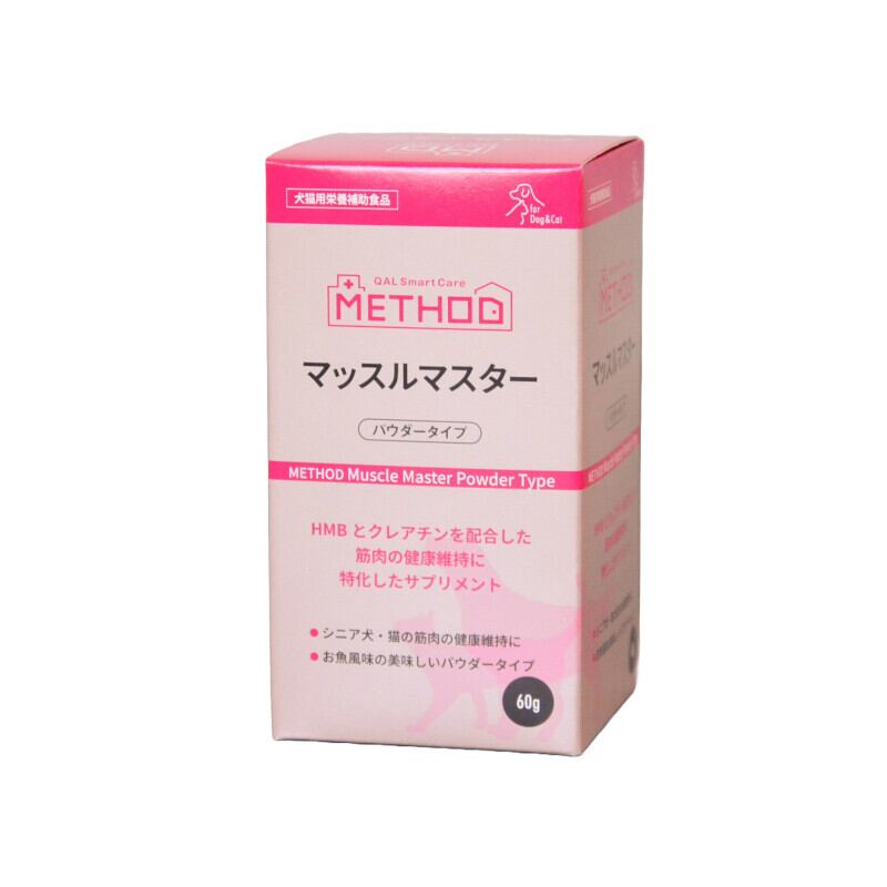 「METHOD マッスルマスター パウダータイプ」は、愛犬との楽しいひとときをお届けするために手軽に利用できるサプリメントです。
