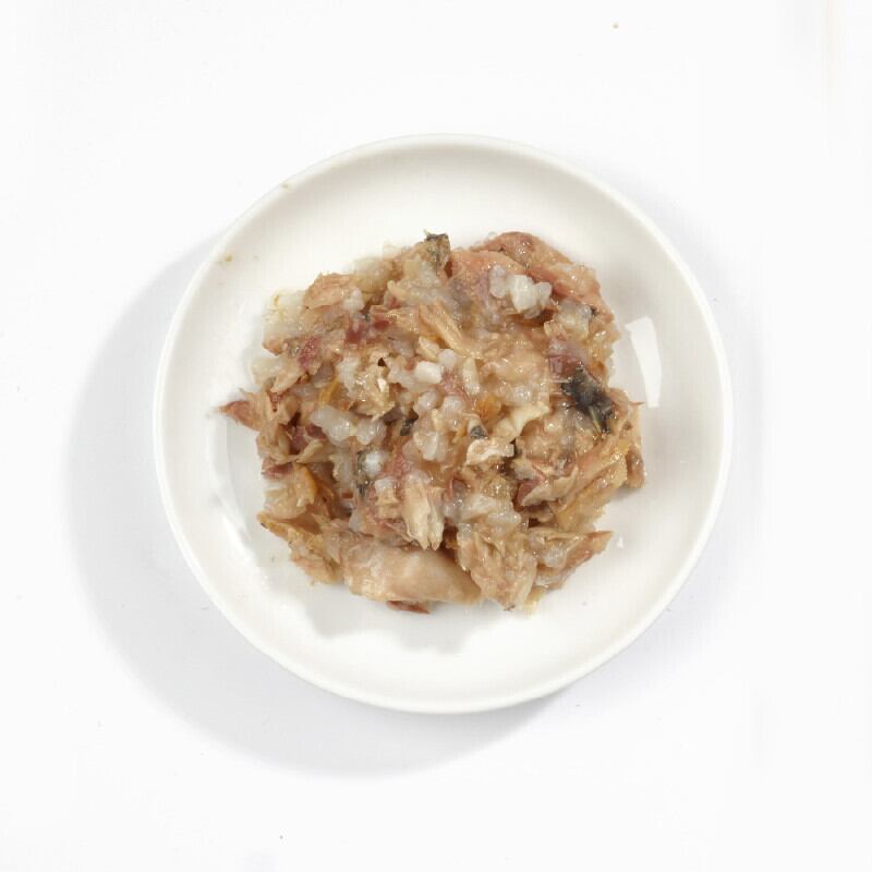 サバベースにイカと栄養抜群のフィッシュスープを含めた贅沢なウェットフード