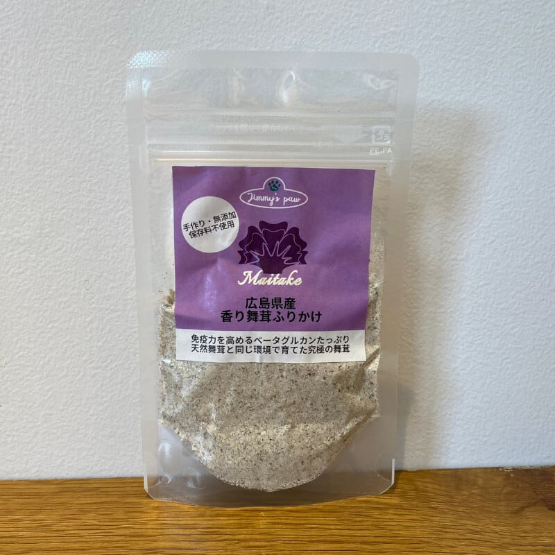 「Jimmy's Paw」の香り舞茸ふりかけは、広島県産の新鮮な舞茸を使用した低カロリーで高栄養価なふりかけです。嗜好性が高く、愛犬の健康維持をサポートし、毎日の食事を楽しい体験に変えてくれます!
