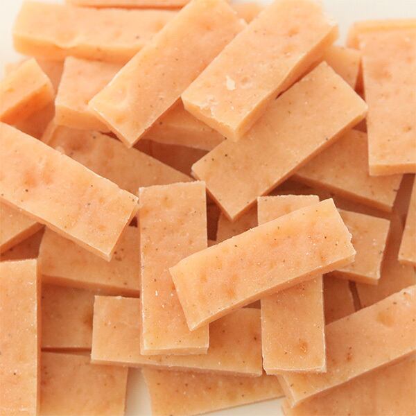 鶏のささみをベースとした嗜好性の高い原材料を使用し、またちぎりやすく噛みやすい形状・弾力で製造することにより、年齢を問わず多くの犬・猫に好んで食べてもらえるよう設計しました。