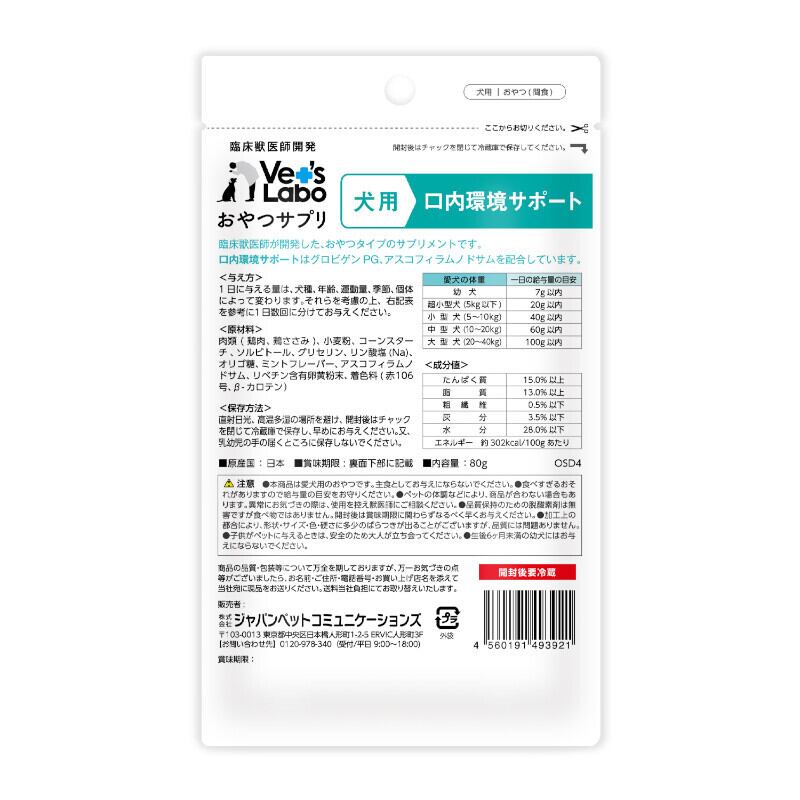**商品説明文【Vet`sLabo】おやつサプリ犬用 口内環境サポート 80g**
