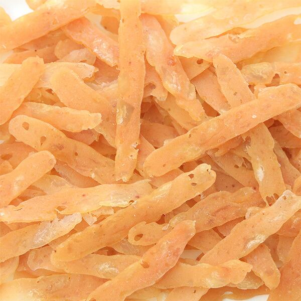 鶏のささみをベースとした嗜好性の高い原材料を使用し、またちぎりやすく噛みやすい形状・弾力で製造することにより、年齢を問わず多くの犬・猫に好んで食べてもらえるよう設計しました。