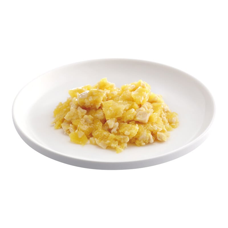 【原材料】鶏ササミ、かぼちゃ、生クリーム、調味料(アミノ酸等)、増粘多糖類、乳等を主原料とする食品(一部に乳製品を含む)、カツオエキス