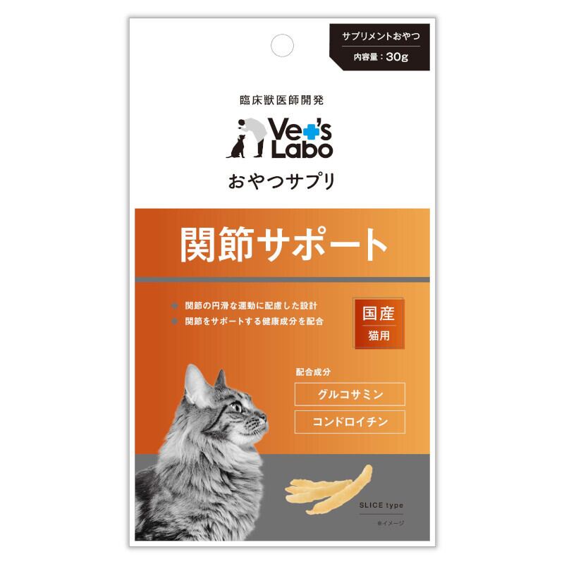 愛猫の健康をしっかりサポートするために開発された【Vet`sLabo】のおやつサプリです!厳選された素材を使用した関節サポート用サプリで、愛猫の元気を応援する30gのこだわり商品です。