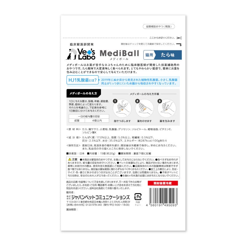 **商品説明文【Vet`sLabo】メディボール 猫用 たら味 15個**