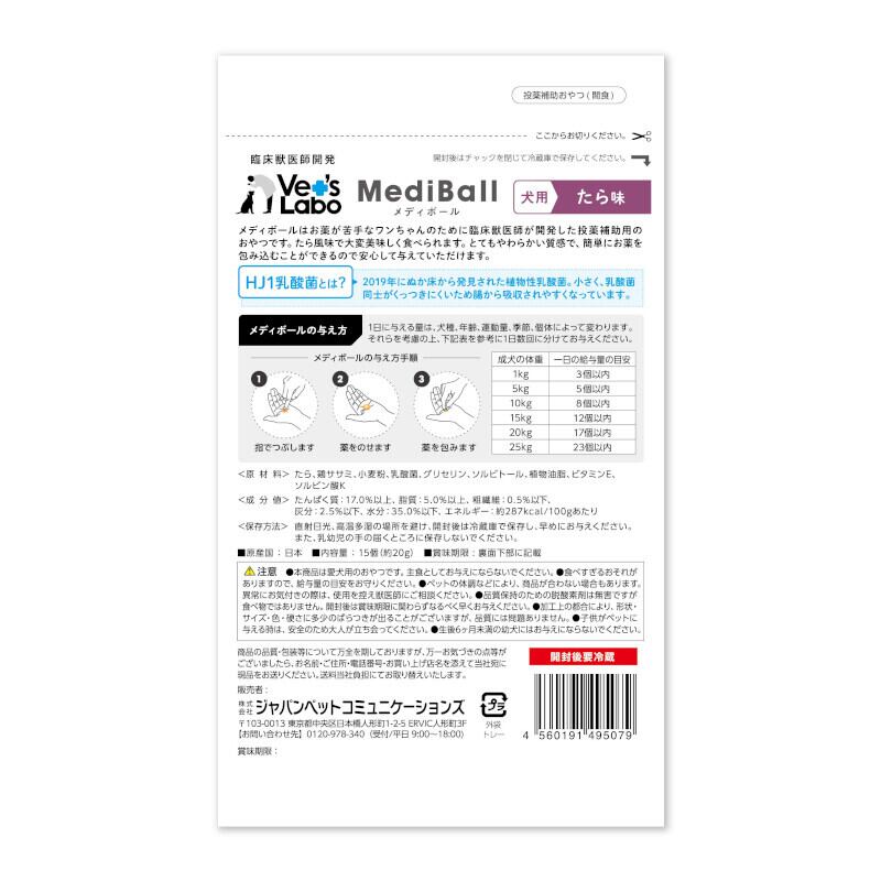 **商品説明文【Vet`sLabo】メディボール 犬用 たら味 15個**