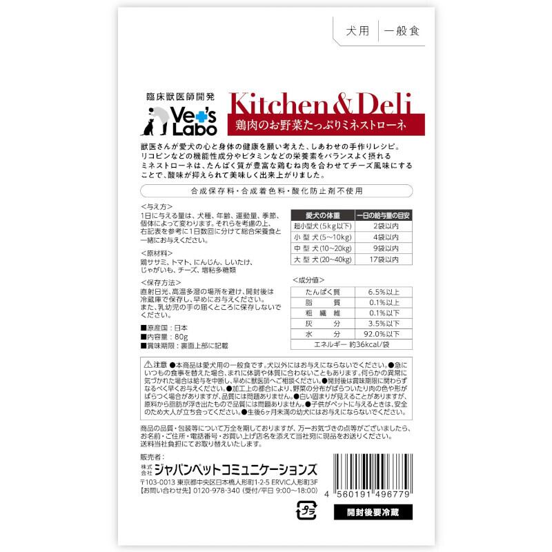 **商品説明文【Vet'sLabo】Kitchen&Deli 鶏肉のお野菜たっぷりミネストローネ 80g**