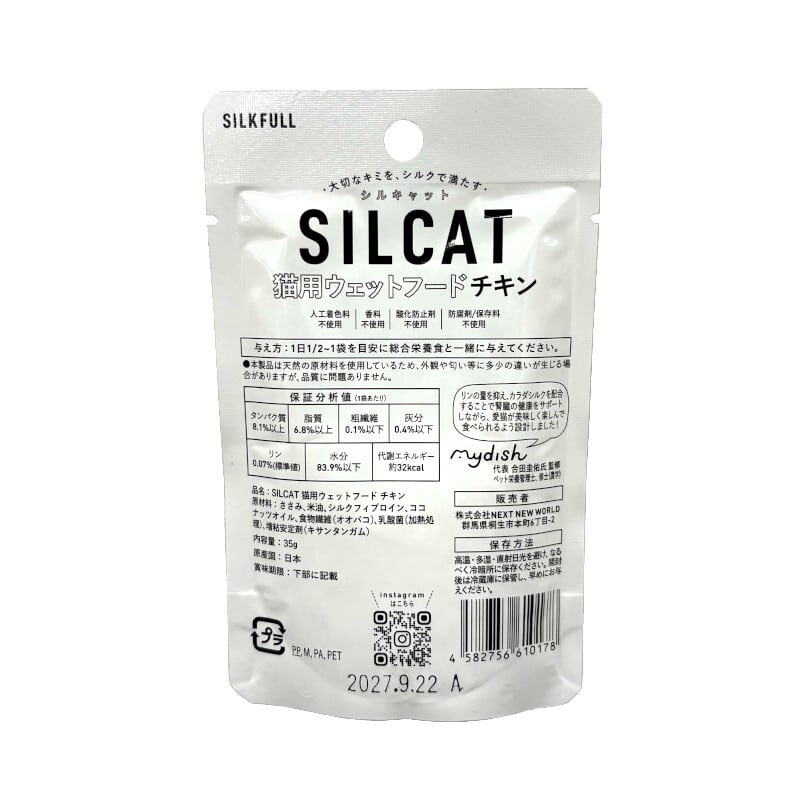 **商品説明文【SILCAT(シルキャット)】猫用ウェットフード チキン味 35g**