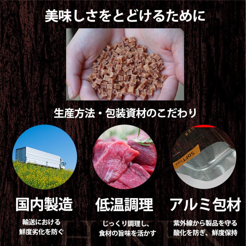 嗜好性抜群!生肉たっぷりの国産セミモイストフード(総合栄養食)です。小粒のソフトタイプで食べやすい!