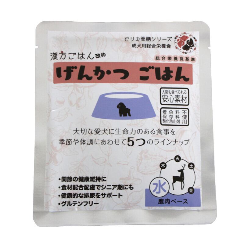 愛犬のために開発された【げんかつごはん】レトルト 総合栄養食 水(鹿肉ベース)で、毎日の食事を美味しく、栄養たっぷりに楽しんでください!