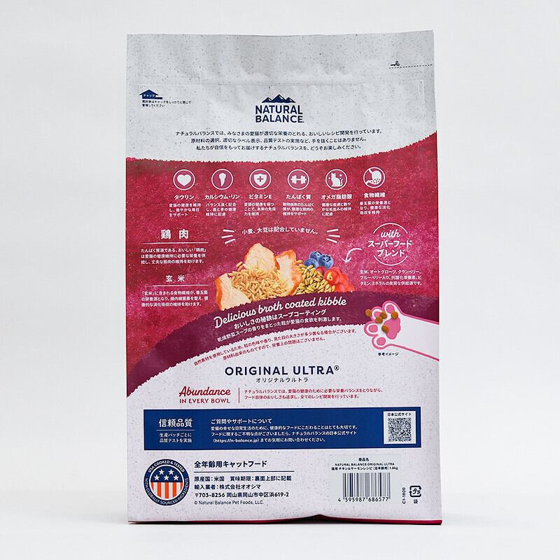 愛猫のために特別に設計された【NATURAL BALANCE】オリジナルウルトラ 猫用 チキン&サーモンで、毎日の食事を美味しく、健康的に楽しんでください!