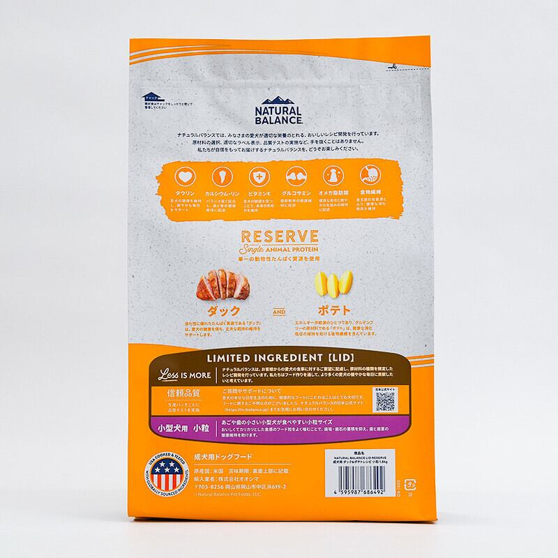 **商品説明文【NATURAL BALANCE】LID・グレインフリー 成犬用 ダック&ポテト 小粒 800g**