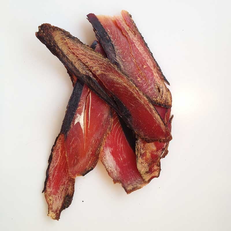 プロ用に作られた良質の鰹節を厚削りにしています。ジャーキーとしても、出汁をとるのに使っても、美味しく安心。鮮度を保つ不活性ガス充填の袋に詰めています。