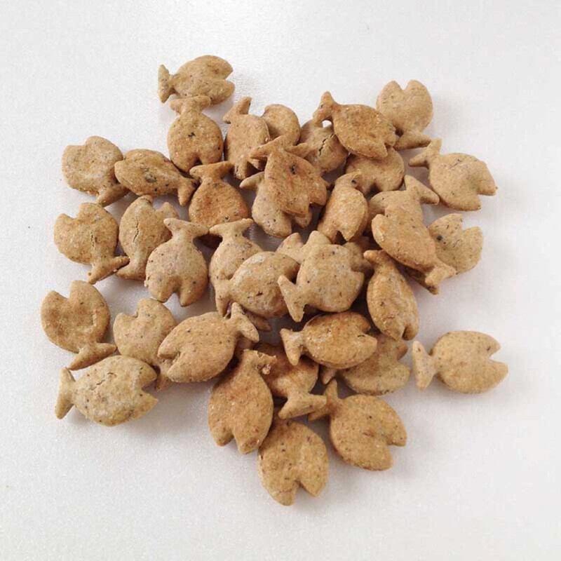 ビスケット生地にたっぷりの煮干しをいれ、カリカリ小さめに焼き上げました。小型犬にもピッタリ。