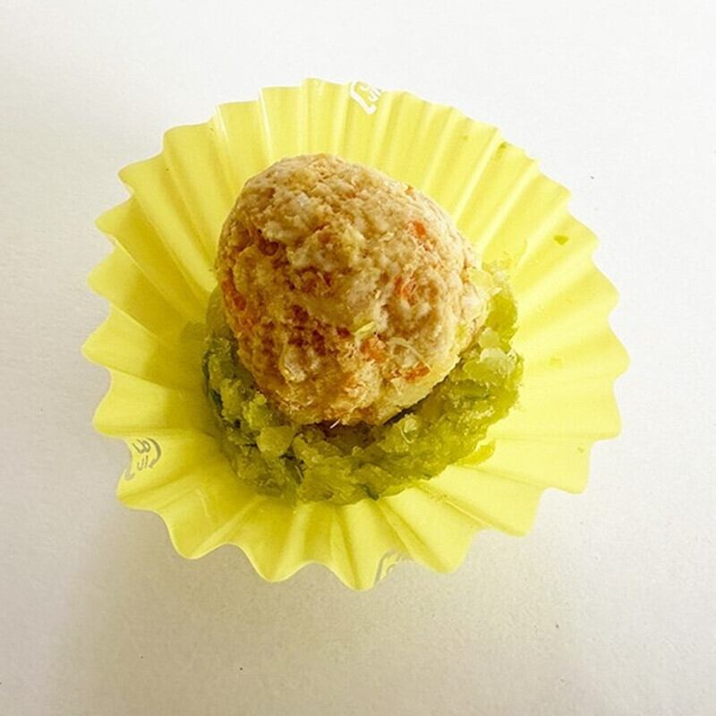 チキンミートボールとコールスロー、鹿肉柔らか煮とカラフルサラダ、サーモンの炊き込みごはんの3種類が8個入っています。