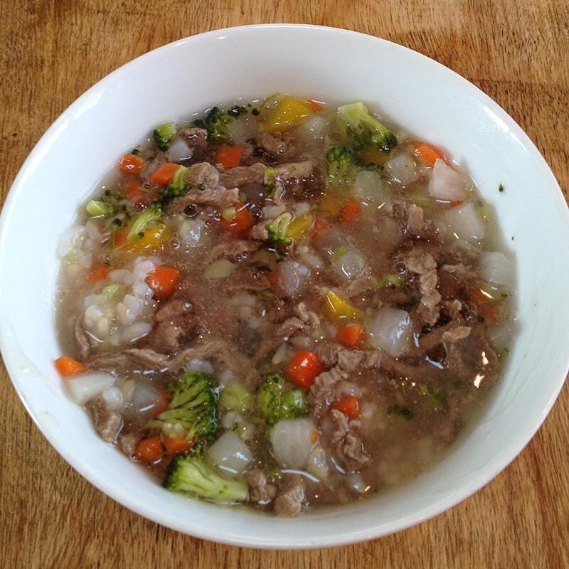 発芽玄米、馬肉、大根、ブロッコリー、にんじん、パプリカ、グリーンピース、寒天