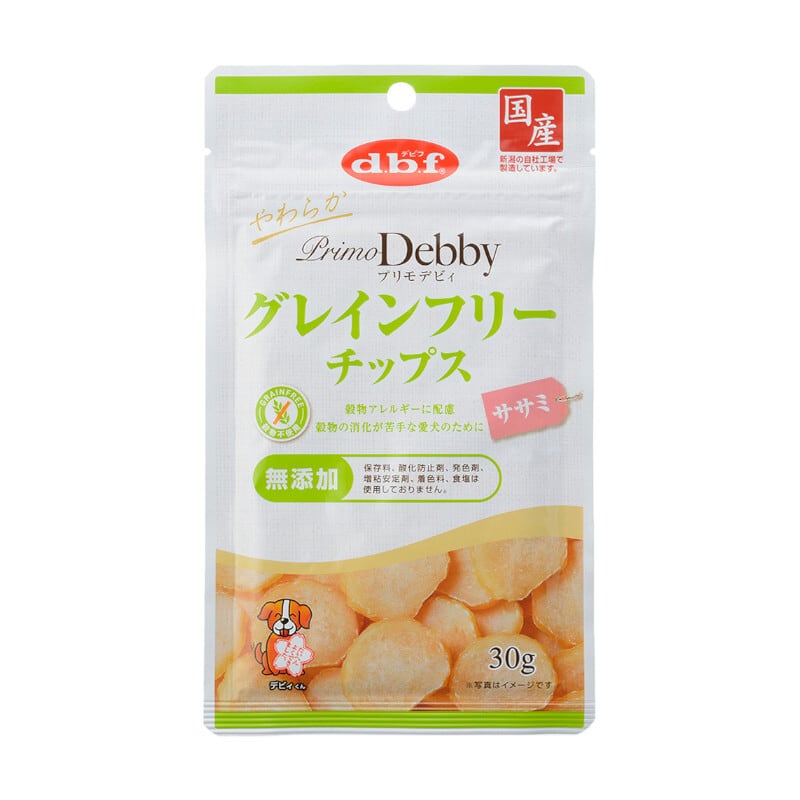 「【d.b.f】プリモデビィ グレインフリーチップス ササミ 30g」は、愛犬の健康と happinessを考えて特別に作られたおやつです。この美味しいチップスを通じて、楽しい時間をお過ごしください!