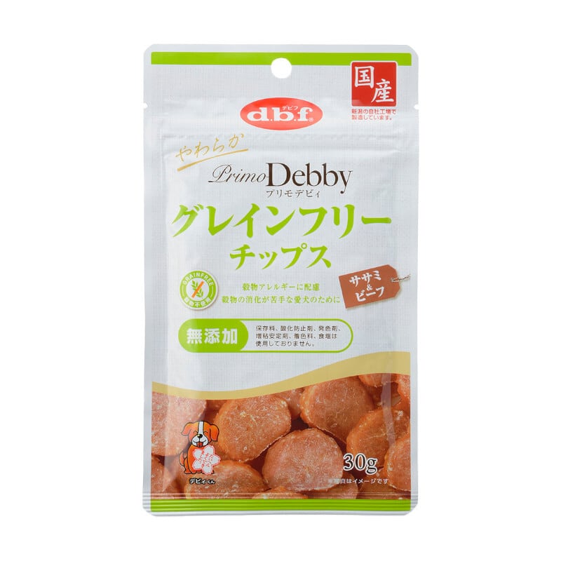 **愛犬のために特別に作られた、ササミ&ビーフの贅沢なグレインフリーチップス!【d.b.f】プリモデビィ グレインフリーチップス ササミ&ビーフ 30g**