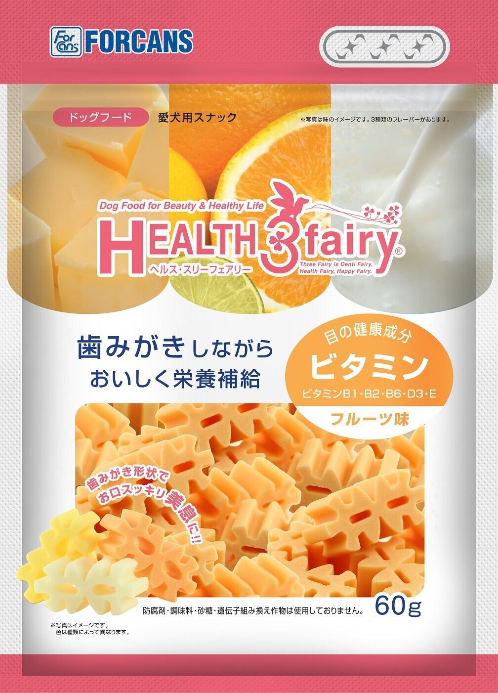 **愛犬のために特別に作られた、自然なフルーツの美味しさを楽しむビタミンおやつ!【フォーキャンス】ヘルス3フェアリー ビタミン(フルーツ) 60g!**