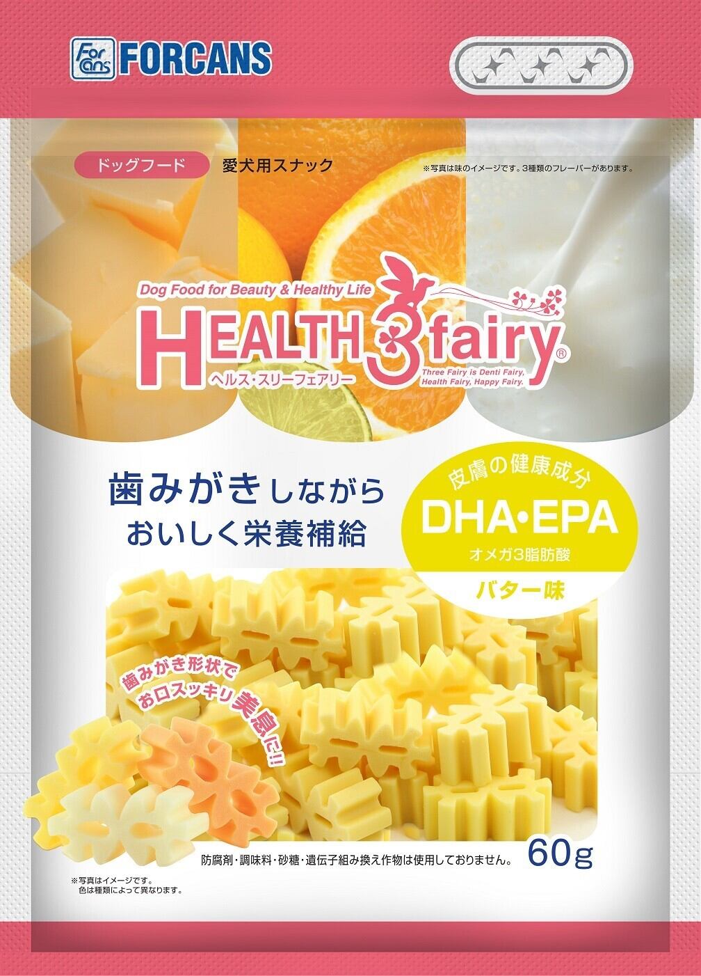 **愛犬のために特別に作られた、オメガ3豊富な健康おやつ!【フォーキャンス】ヘルス3フェアリー オメガ3(バター) 60g!**