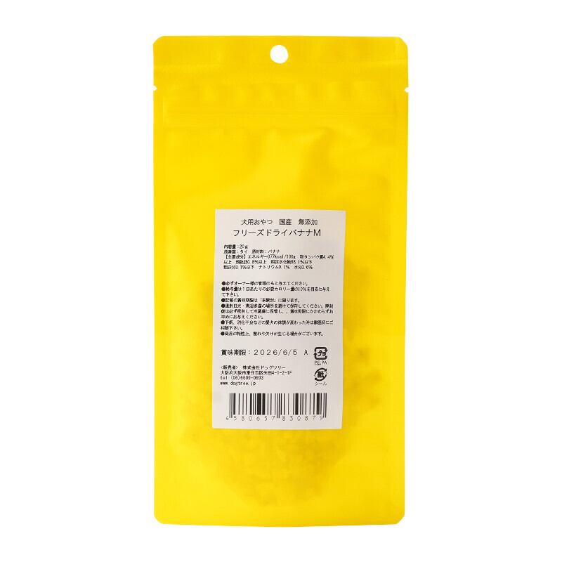 「【DOG TREE】フリーズドライバナナ 20g」で、愛犬に楽しいおやつのひとときをプレゼントしてください!