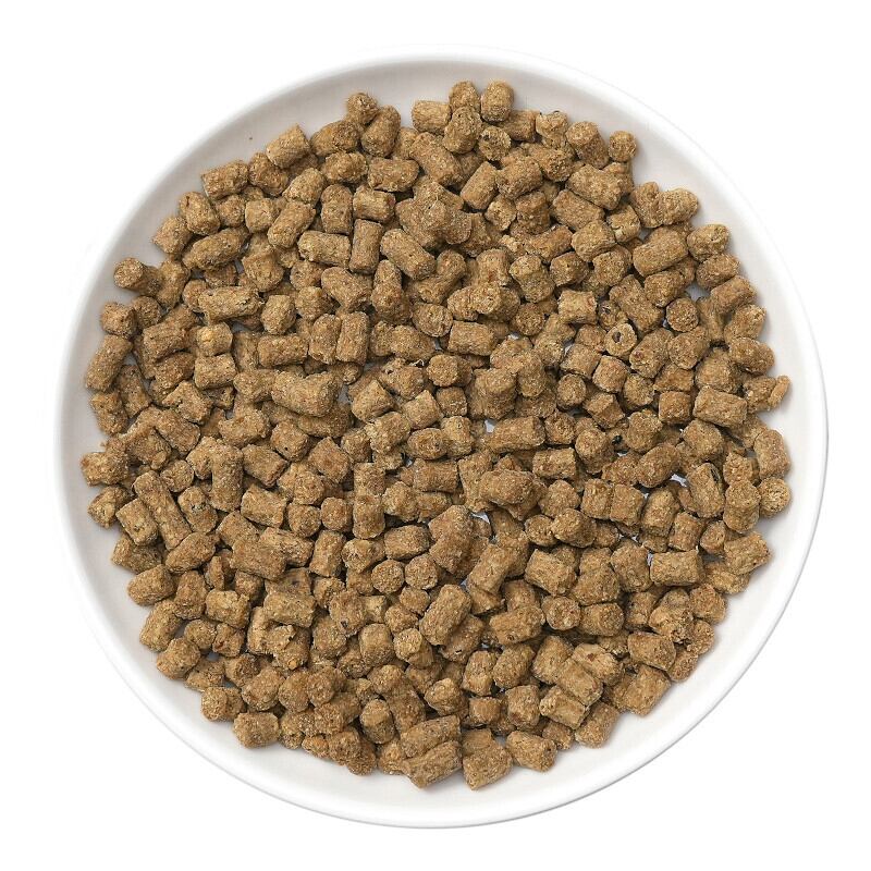 たんぱく質24.8% 以上、脂質9.6% 以上、粗繊維1.4% 以下、灰分5.7% 以下、水分9.0% 以下