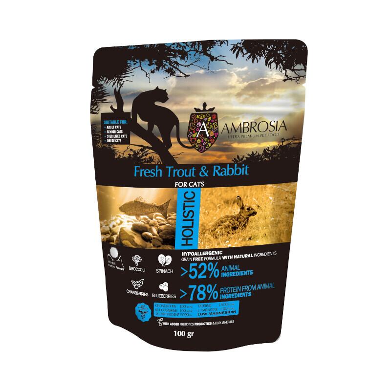 **愛猫に美味しくて健康的なおやつを!【AMBROSIA】キャット トラウト&ラビット 100g!**