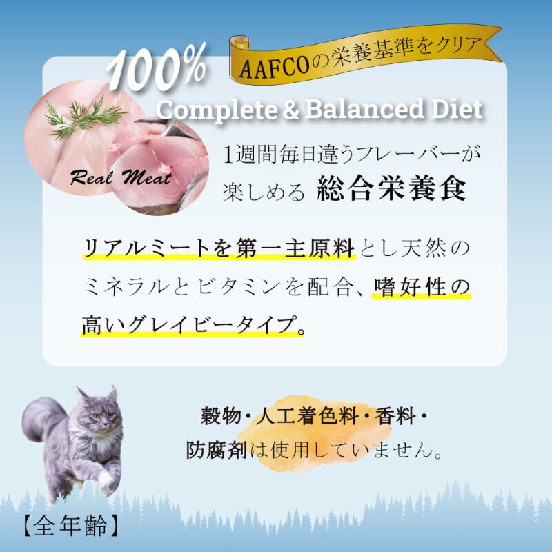オールステージ・猫用総合栄養食「シグネチャー7」素材のエキスが溶け込んだスープが多めのグレービータイプ。