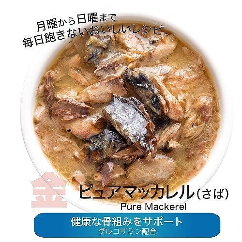サバ、水、大豆油、ビタミン・ミネラル類(第三リン酸カルシウム、塩化コリン、塩化カリウム、塩化ナトリウム、硫酸マグネシウム、α-トコフェロール、酸化亜鉛、ニコチン酸、酢酸レチノール、たんぱく質キレート銅、硫酸マンガン、硫酸第一鉄、 チアミン硝酸塩、第二リン酸カルシウム、パントテン酸カルシウム、リボフラビン、ピリドキシン塩酸塩、ビオチン、亜セレン酸ナトリウム、ビタミンB12、コレカルシフェロール、ビタミンK、ヨウ化カリウム、葉酸、酸化マグネシウム)、タピオカデンプン、グルコサミン、カルボキシメチルセルロースナトリウム、タウリン