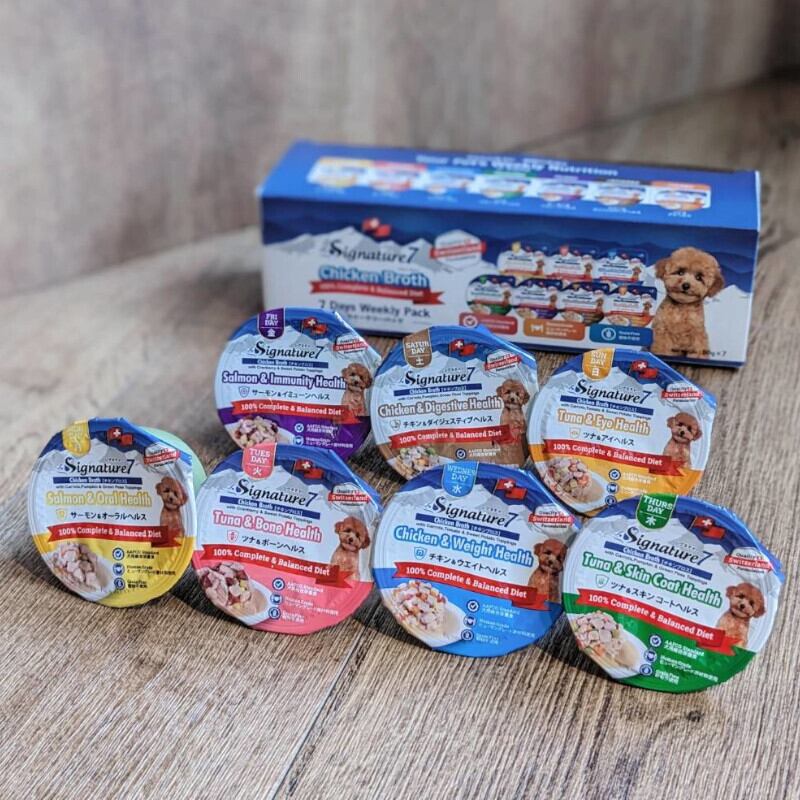 愛犬のための栄養満点なおやつ、シグネチャー7のチキンブロスウィークリーパック!
