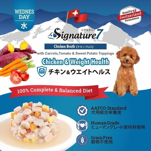 愛犬のための栄養たっぷりなおやつ、シグネチャー7のチキンブロス チキン&ウエイトヘルス!