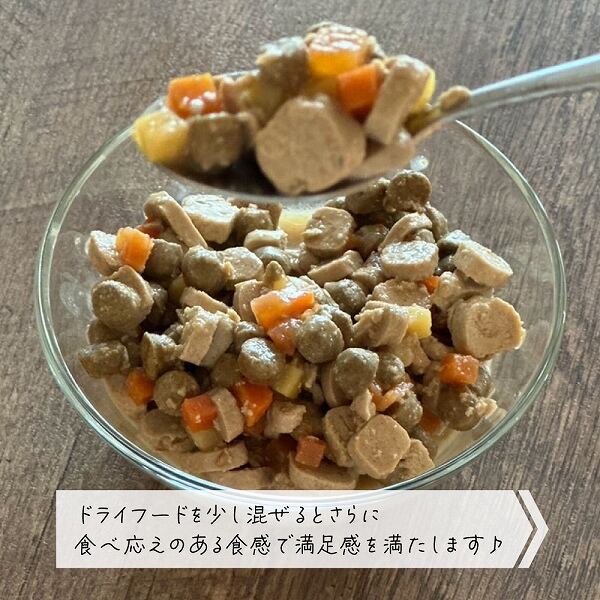 80gのパッケージは、あげやすいサイズで、日々のおやつや食事のトッピングにも最適です!サーモンのリッチな旨味とチキンの風味が織り成すブロスが、愛犬に特別なひとときを演出します。