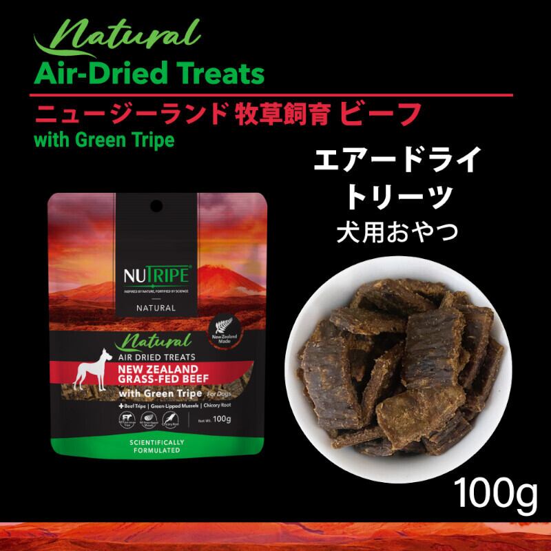愛犬に贅沢なご褒美を!【NUTRIPE natural】エアードライ トリーツ ビーフwithグリーントライプ 100g