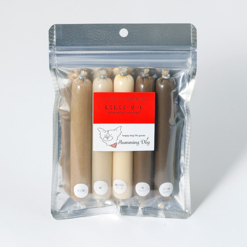 「【Humming Dog】もぐもぐそーせーじ 5種セット5本」は、愛犬のために特別に設計されたおやつです。心温まる瞬間をこのソーセージでぜひお楽しみください!