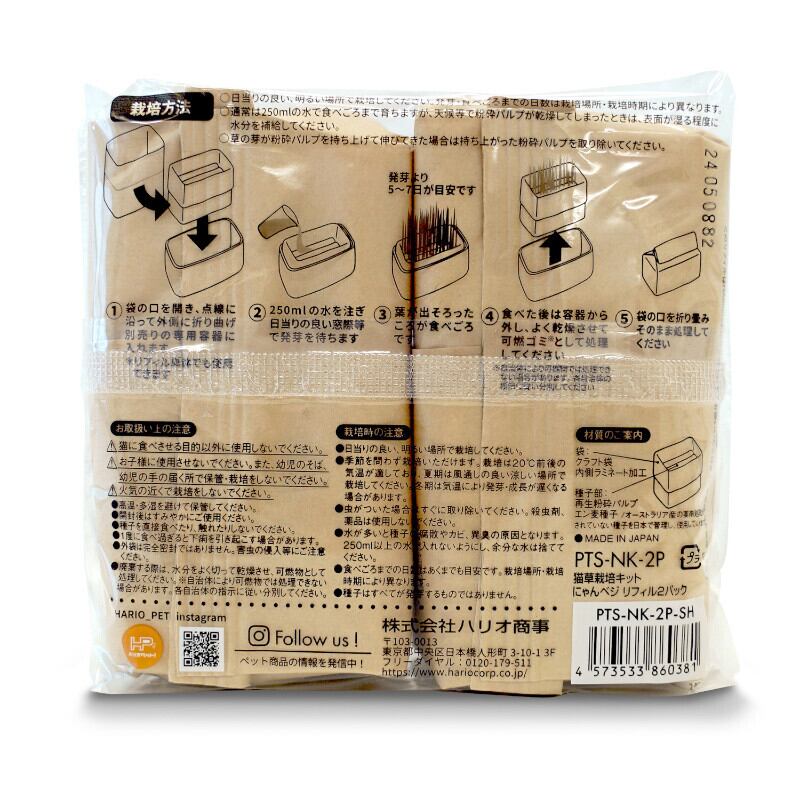 「【HARIO】猫草栽培キット にゃんベジ リフィル 2パック」で、愛猫との楽しいひとときをお過ごしください!