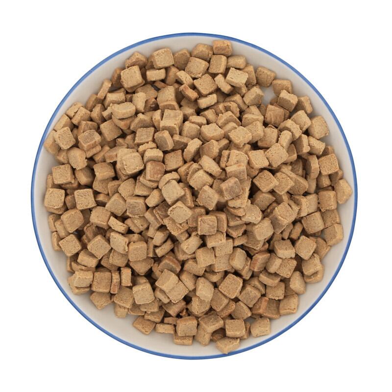 適量を与えて、そのまままたは水分を加えてふやかして与えてください。お好みに応じて、乾燥野菜やフルーツをトッピングしても美味しくお召し上がりいただけます。