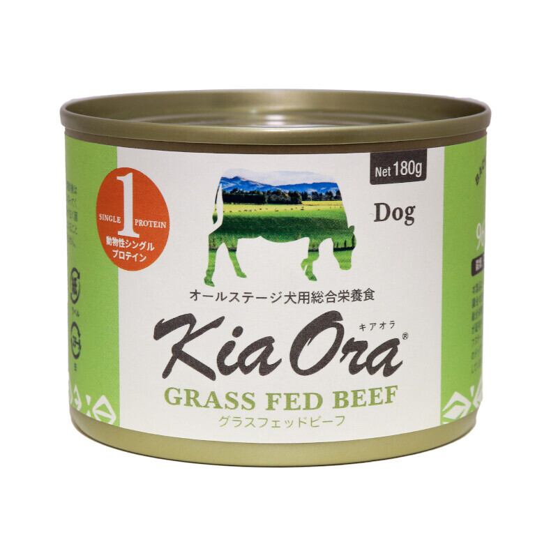 「【KiaOra】ドッグフード(缶詰) グラスフェッドビーフ」は、愛犬の健康を考え、厳選されたグラスフェッドの牛肉をたっぷり使用しています! 牛肉のリッチな風味とジューシーな食感が、愛犬のお好みを引き立て、毎日の食事を特別なものにします。