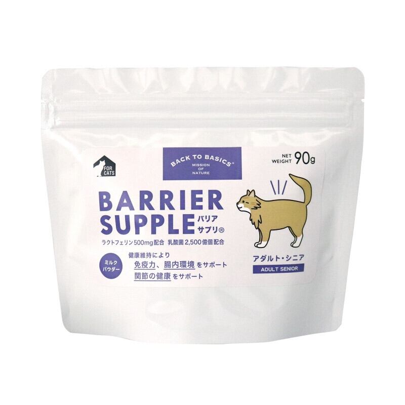 「【バリアサプリ】キャット アダルト・シニア」は、愛猫の健康をしっかりサポートする栄養豊富なサプリメントです! 年齢に応じた栄養バランスが考慮されており、特にアダルトやシニアの猫に最適な配合となっています。