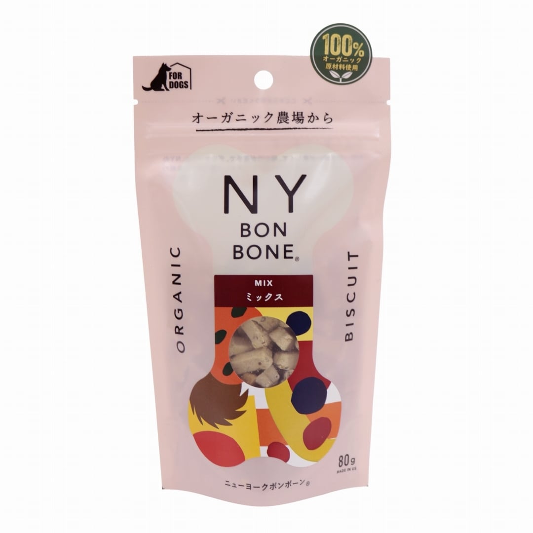 「【NY BON BONE】ミックス 80g」は、愛犬との特別な時間を一層豊かにするためにデザインされた商品です。日常生活の中で、愛犬に喜ばれる特別なおやつとして最適です!