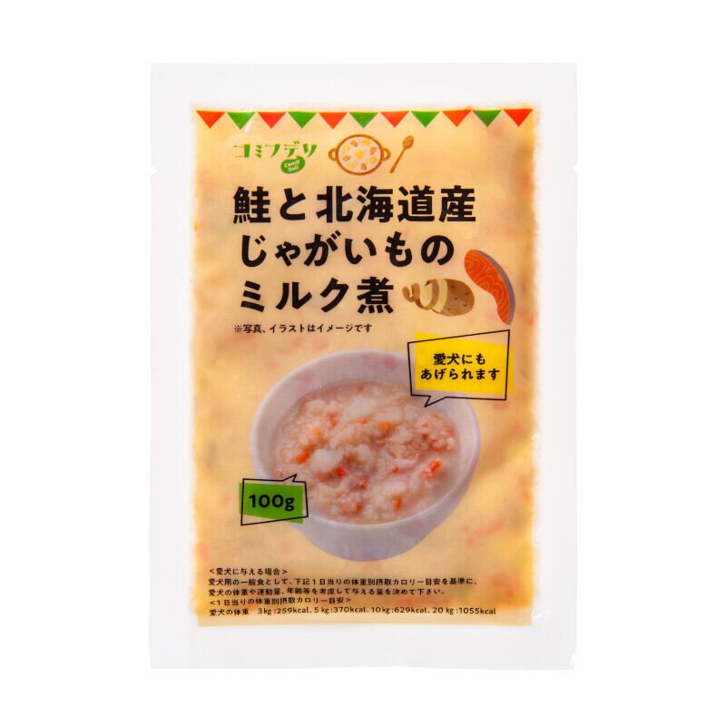 「[冷凍]【コミフデリ】鮭と北海道産じゃがいものミルク煮 100g」で、愛犬との楽しい食事タイムをぜひお楽しみください!
