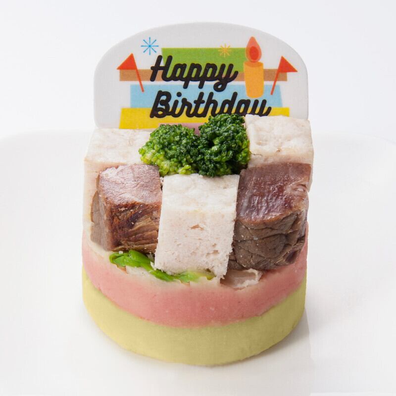 「[冷凍]【コミフデリ】お肉のバースデーデリケーキ」で、愛犬との特別なひとときをぜひお楽しみください!
