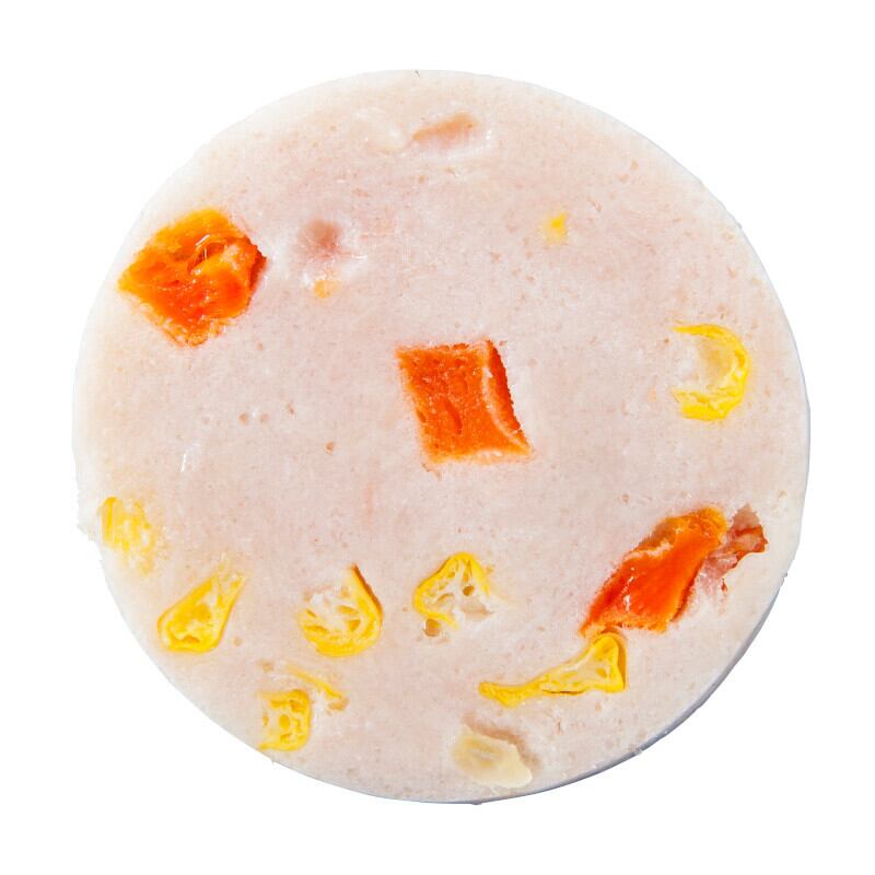 鶏肉(国産)、ミックスベジタブル(にんじん、コーン、グリンピース)、でん粉、ゼラチン、食塩、砂糖、(一部にゼラチン・鶏肉を含む)