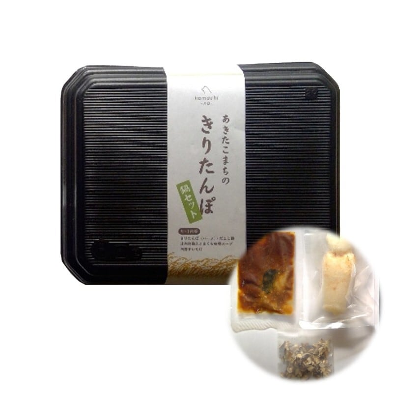 秋田の郷土料理きりたんぽの鍋セット。スープにお湯を注いで1分でできあがり。