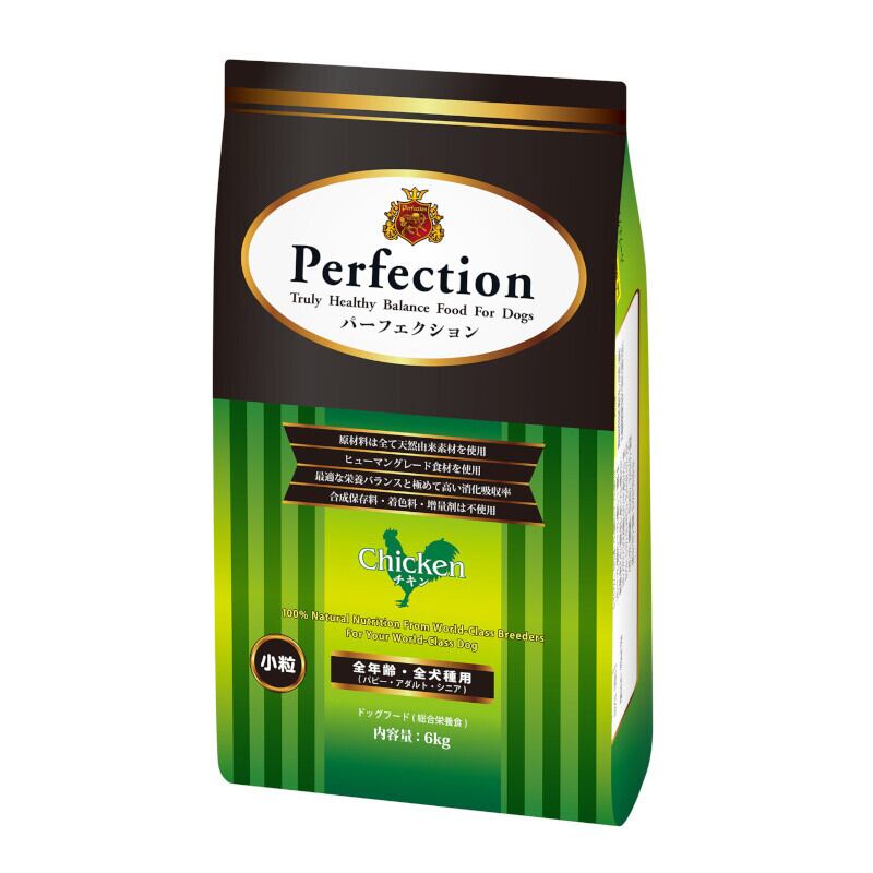 「【パーフェクション(perfection)】チキン(小粒) 900g」は、厳選された新鮮なチキンを使用した高品質なドッグフードです!愛犬の健康を考え、栄養バランスに優れた設計がなされています。