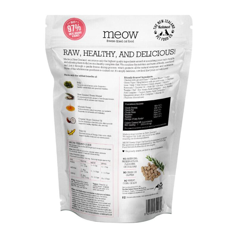 「【ミャウ(MEOW)】チキン&サーモン 50g」は、愛猫の健康を楽しくサポートするために開発された商品です。特別な食事の時間を通じて、愛猫との絆をさらに深めてみてください。