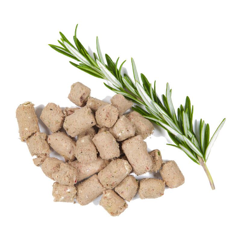 不飽和脂肪酸・ビタミンB群を多く含むダックを主原料に、各種効果を期待できるマヌカハニー、チアシード、バージンココナッツオイル、ホキ肝油、緑イ貝、ケルプを配合。